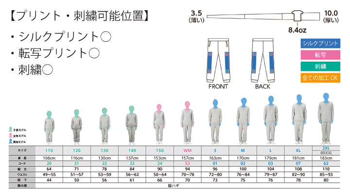 8.4オンス ライトスウェットパンツのカラー 一覧