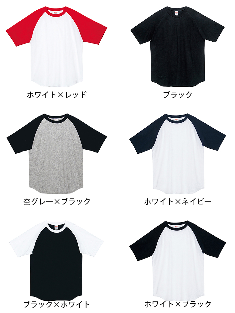 カジュアルでスポーティーなイメージのラグランスリーブのTシャツ。定番のバイカラーと使い勝手の良い単色のカラーの展開です。