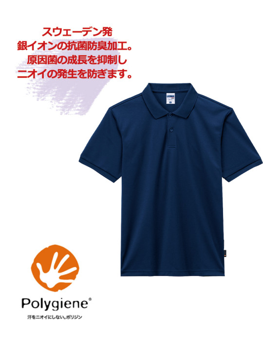 着用時のサラッとした着心地が持続する吸水速乾の生地に汗のニオイを抑えるポリジン加工を施したドライポロシャツ。