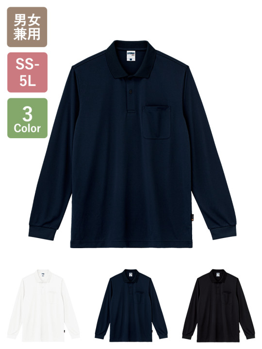 銀イオンによる抗菌防臭加工 ポリジンドライシリーズ!機能性抜群!快適な着心地を与えてくれるドライロングスリーブポロシャツです!
