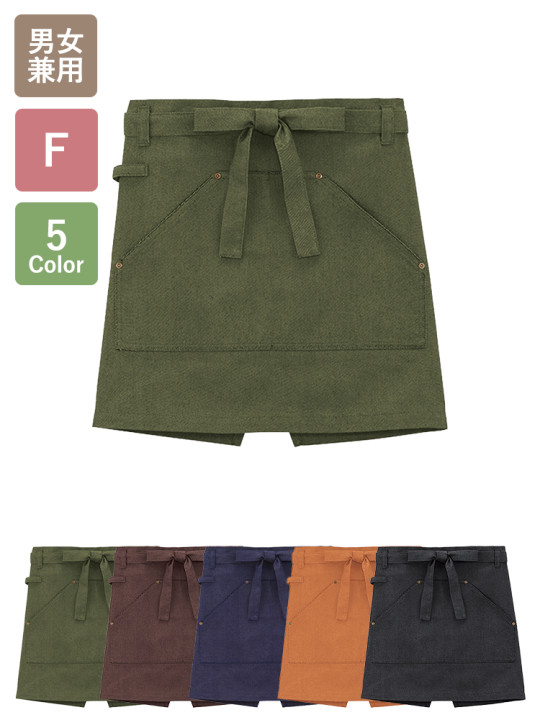 肌触りの良いツイル素材で着心地◎デニム調生地とこだわりを感じさせるリベットボタンでファッション性◎右脇にタオル等をかけられる便利なループ付き!