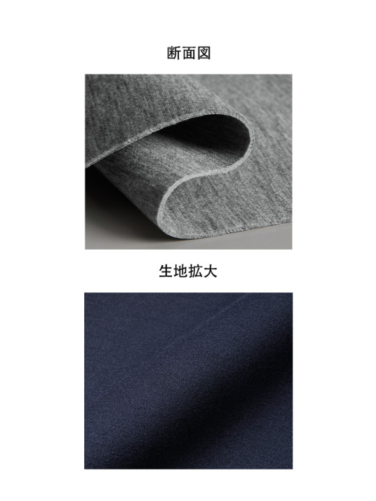 ポリエステル79%、レーヨン15%、ポリウレタン6%の合成で、優れた伸縮性と保湿性を誇ります。