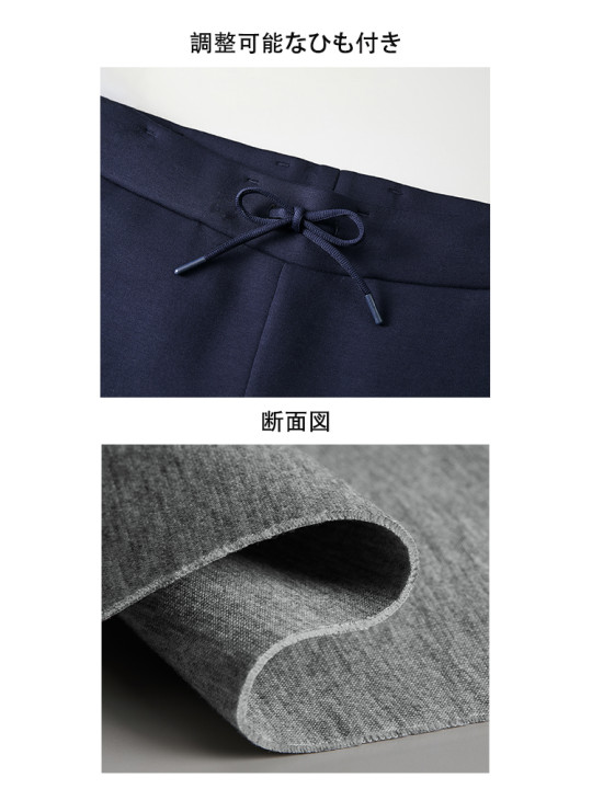 ポリエステル79%、レーヨン15%、ポリウレタン6%の高品質素材を使用し、快適な穿き心地と優れた耐久性を両立。