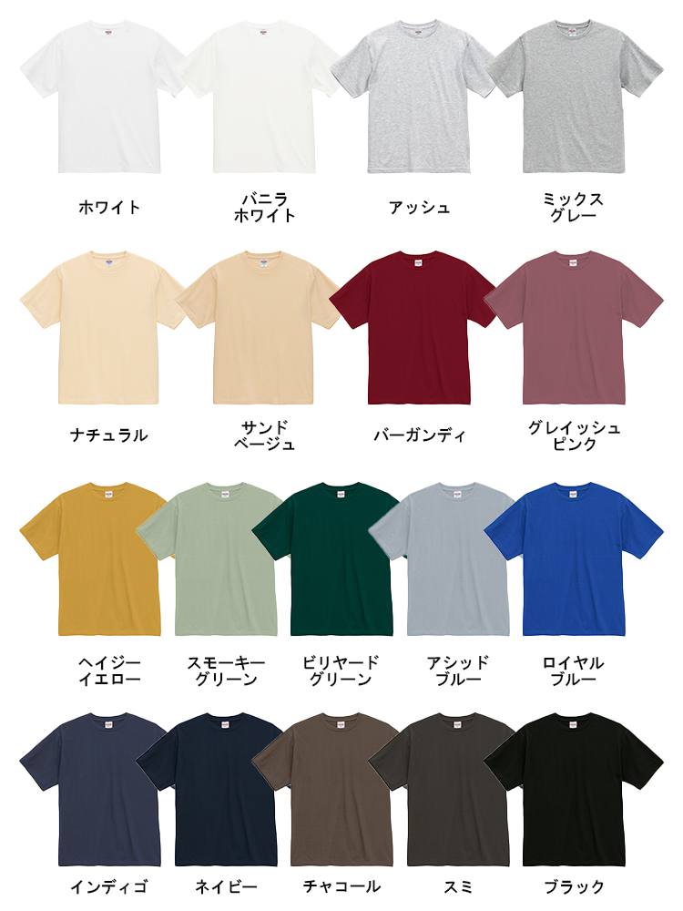 6.0オンス オーセンティック オープンエンド ヘヴィーウェイト Tシャツのカラー 一覧