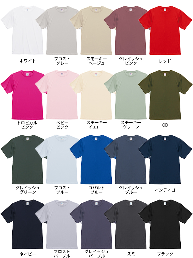 リサイクルポリエステル100%のTシャツで、サステナブルなファッションを楽しもう!薄手で軽やかな4.4オンス、吸水速乾でいつでも快適!4.4オンス ドライスムース リサイクルポリエステル Tシャツのカラー 一覧