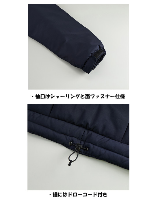 寒い冬もこれで決まり!「インサレーテッド フルジップ パーカ」はポリエステル100%のふわっとしたタフタ生地で、温かさ満点!