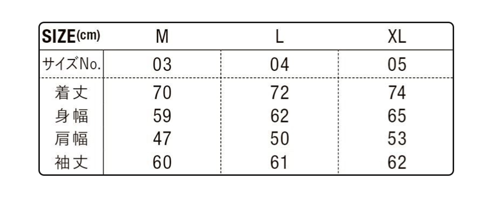 インサレーテッド スタンド ジャケット(中綿入)のサイズ表