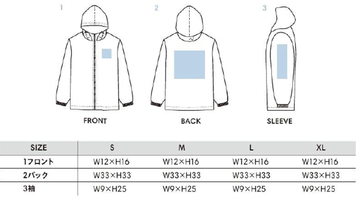 リサイクルタフタフーデッドジャケットのサイズ表