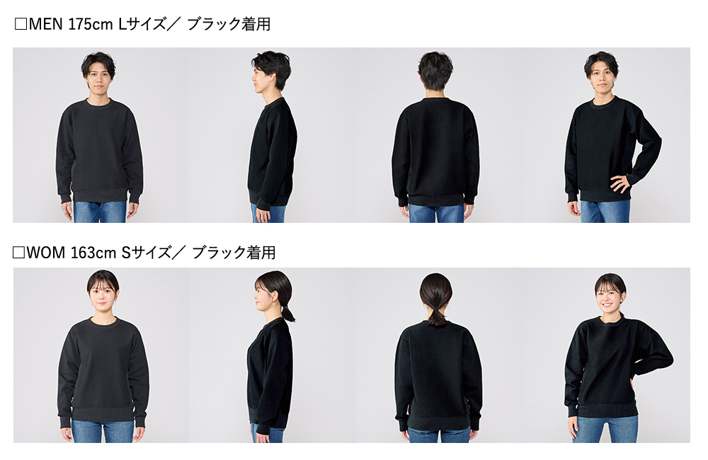12.0オンス 裏起毛ヘビートレーナーのモデル着用イメージ