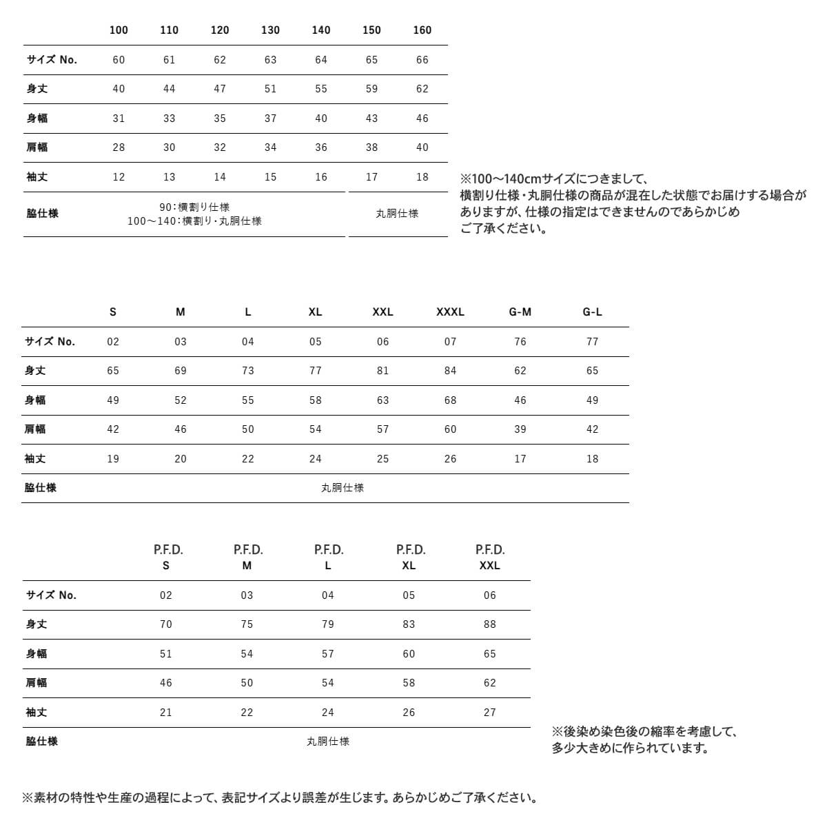 ●サイズ:S~XXXL(アダルト)、90~160(90~160㎝)、G-S~G-L(ガールズ)