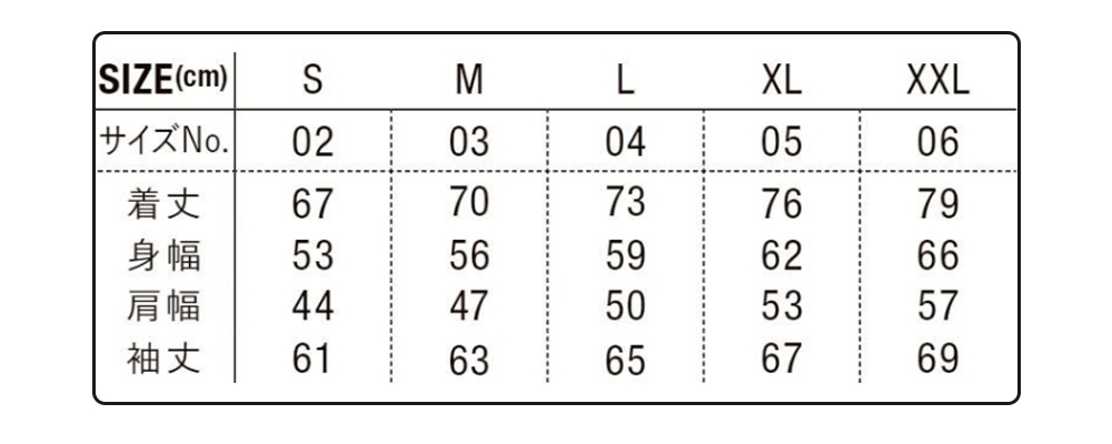 ナイロン コーチ ジャケット(裏地付)のサイズ表
