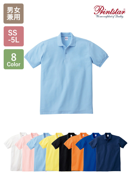 交編鹿の子編みのサラサラとした爽やかな着心地のT/Cポロシャツはポケット無しのシンプルデザインなので、プリントや刺繍の加工も入れやすく、イベントやサークルなどのチームウェアに大活躍です。