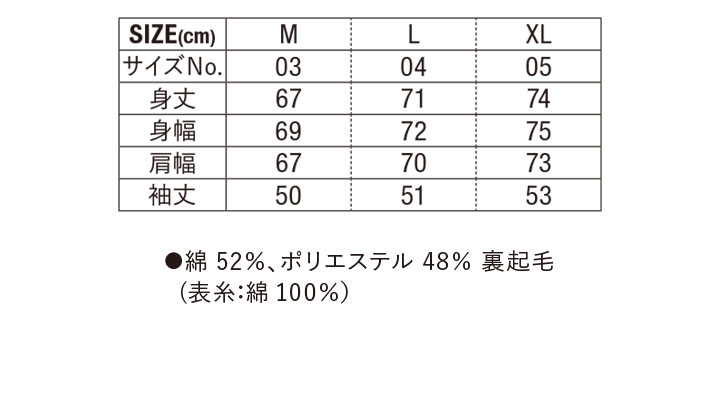 ●素材:裏起毛(綿52%、ポリエステル48%)