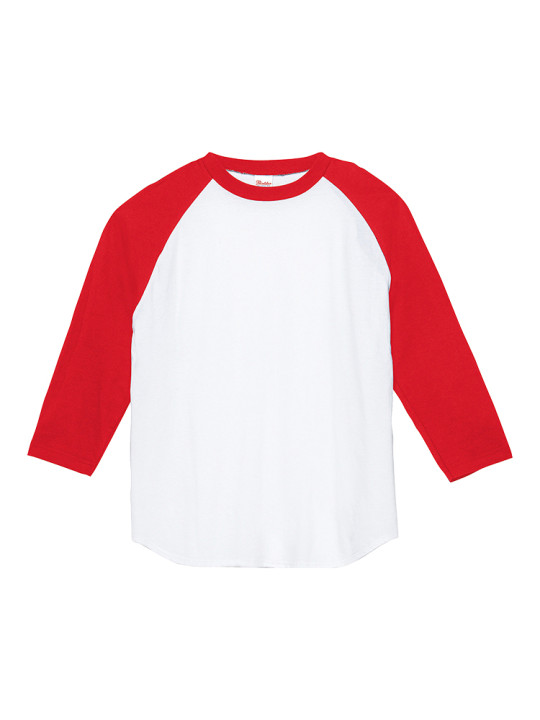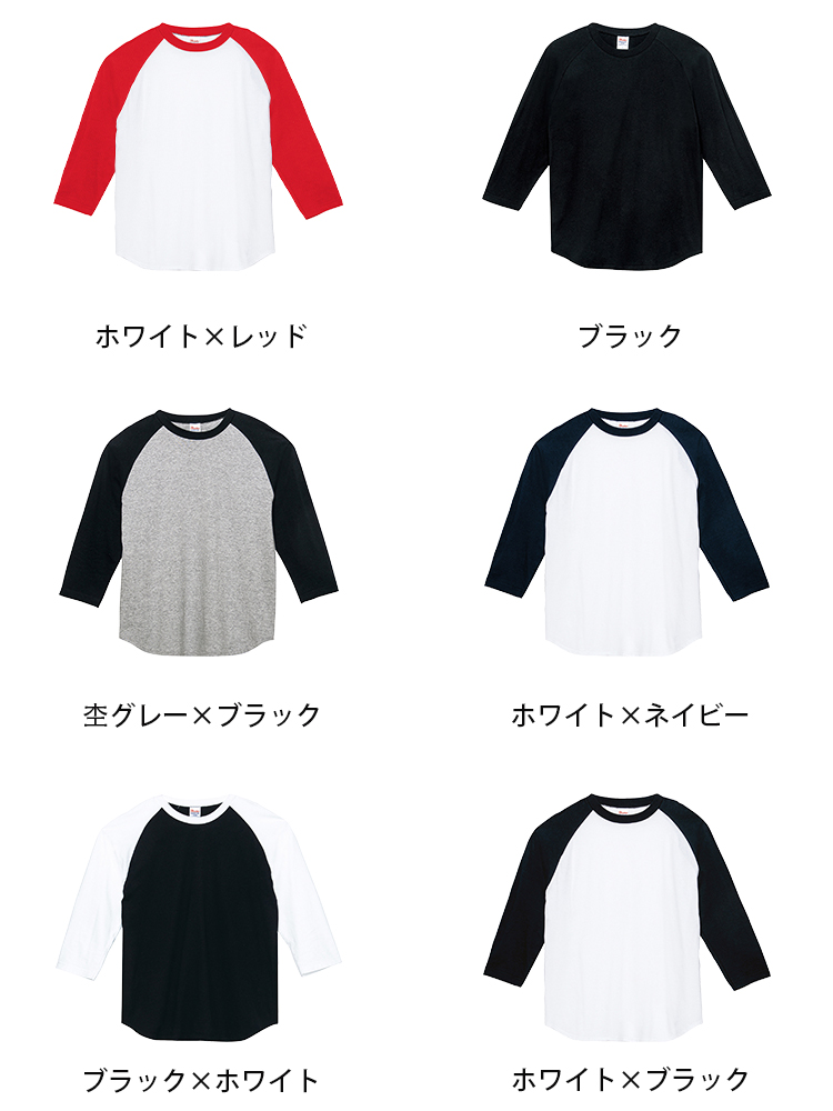カジュアルでスポーティーなイメージのラグランスリーブTシャツ。袖は長めの3/4丈のベースボールTシャツタイプです。